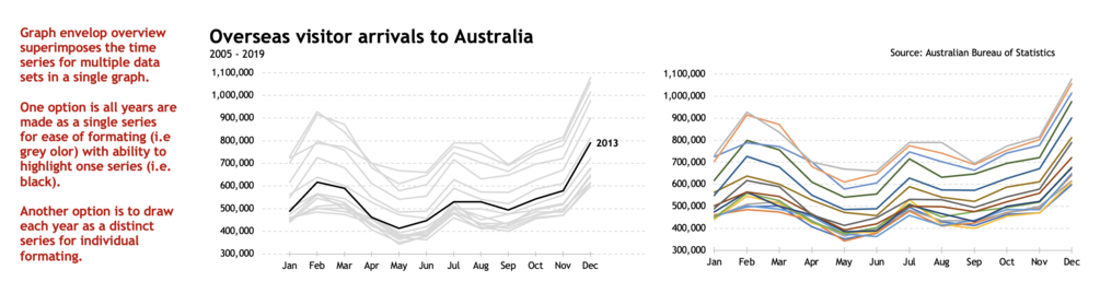 - Graph Envelope Overview—enables the underlying seasonal pattern to be seen more clearly, and also allows any substantial departures from the seasonal pattern to be easily identified.